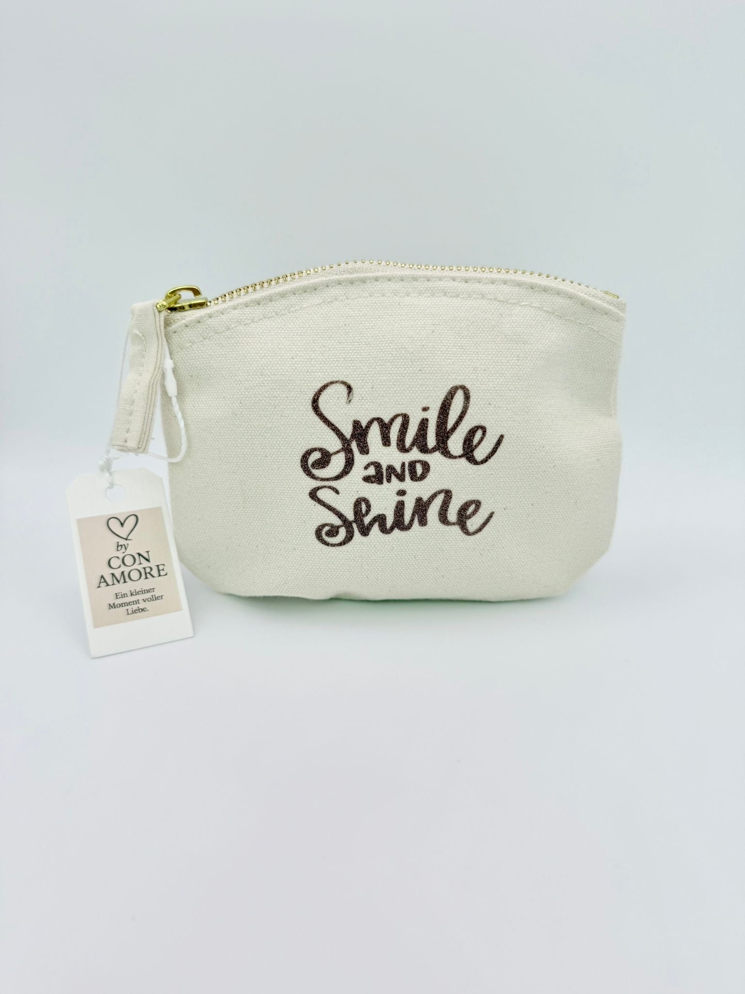 Die byConAmore Kosmetiktasche „Smile and Shine“ erinnert dich jeden Tag daran, positiv zu bleiben und dein Licht leuchten zu lassen.