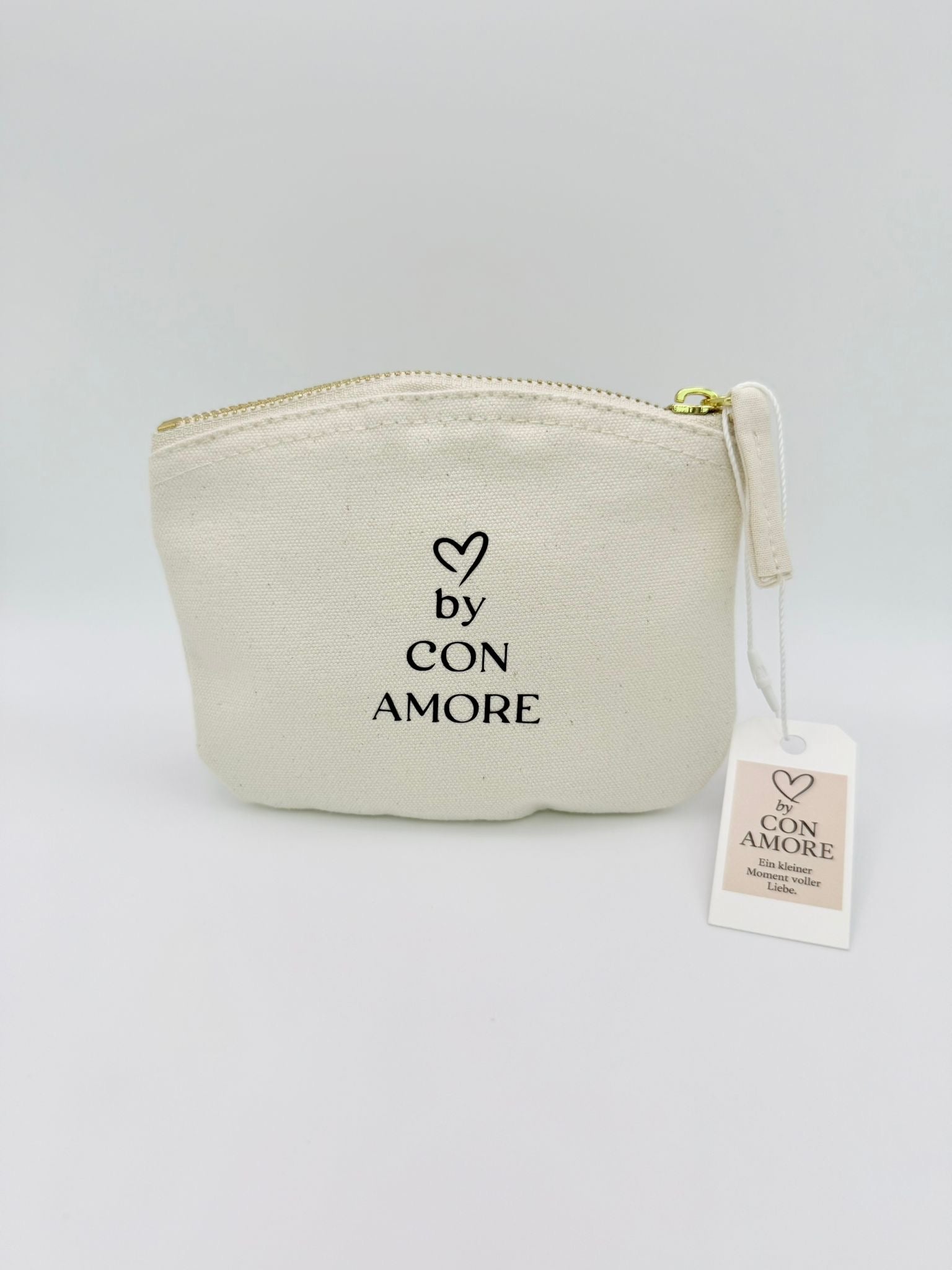 Handgefertigt aus robuster Baumwolle in zartem Naturton ist sie perfekt für dein Make-up, unterwegs oder als kleine Geschenkidee mit Herz.